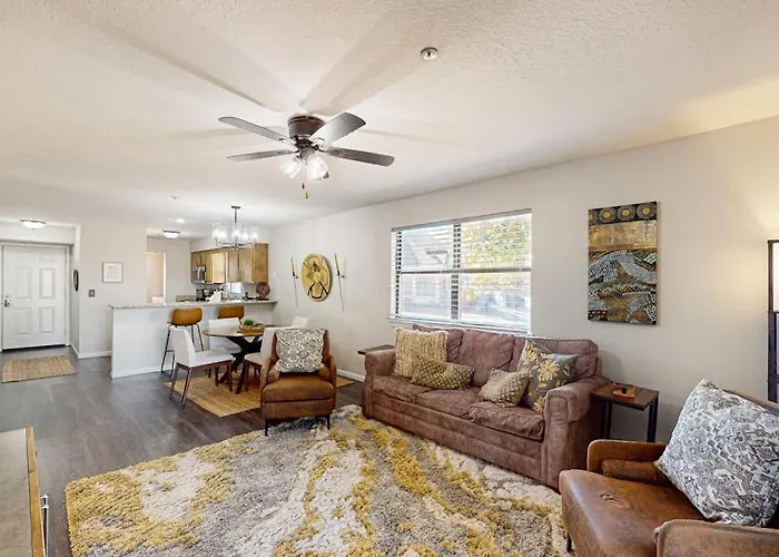 O apartamento Relax In Style At Silver Linings, 2Br 2Ba Pointe Royale Retreat In Branson oferece aos hóspedes pátio e varanda, bem como confortos modernos como controle de temperatura. Este apartamento dispõe de casa de banho com secador de cabelo, lençóis de banho e toalhas. Além disso, encontrará banheira, casa de banho separada e chuveiro.